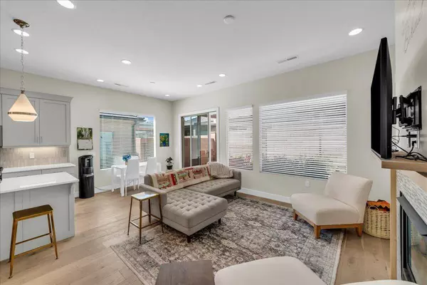 This luxurious townhome is nestled in the 55+ community of Villas at Sun River, offering an ideal blend of comfort and style. Soaring 10 ft ceilings and 9 ft doors, open living room with cozy fireplace and built in shelving. The gourmet kitchen includes quartz countertops, upgraded soft close cabinetry, stainless appliances with gas stove and tile backsplash. The home features generous bedrooms plus a versatile office/den. The fully fenced patio, complete with an awning provides a secluded backyard oasis. HOA amenities include access to stunning clubhouse, pool, spa, sports court and putting green!